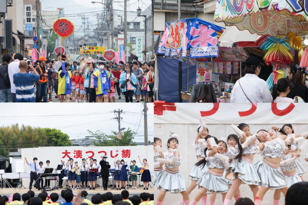 当日は会場周辺が歩行者天国となり、安心してゆっくりと散策できます。見どころのひとつは、少年武者行列や子ども神輿、ブラスバンドなどが登場するパレード。さらに、大津太鼓の演奏やダンス、吹奏楽などのステージイベントも行われ、会場全体が活気に包まれます。
